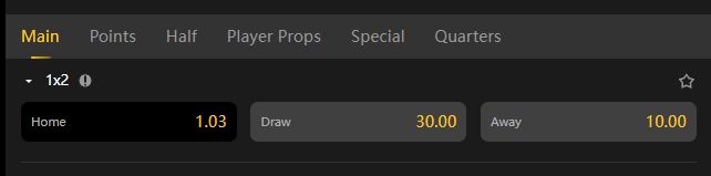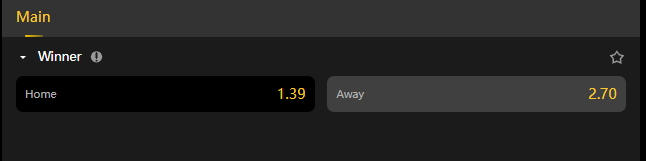 * Bets on this market are settled on the result of the match at the end of its regular time