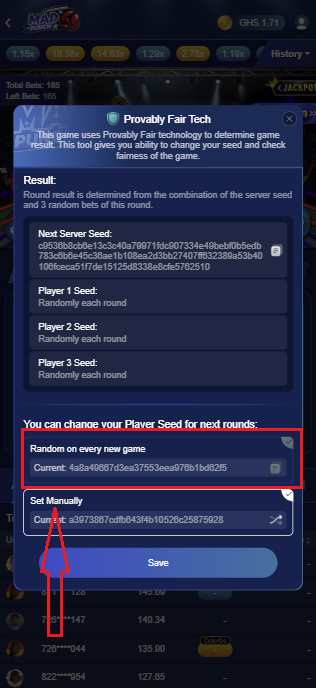STEP 5:. You can change the Player Seed for the round from Random to Set Manually