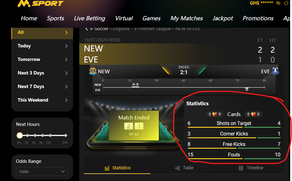 STEP 4: From V-SOCCER, click or select on any of the FINISHED GAMES.