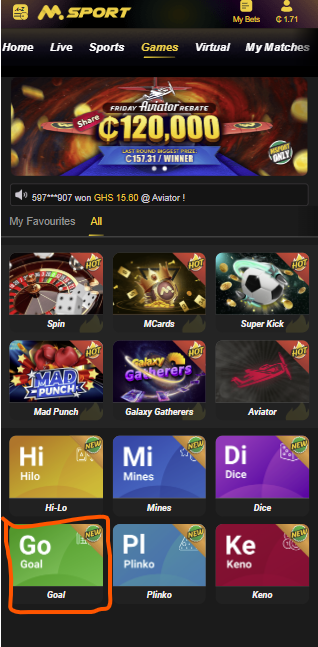 STEP 3: Select and tap on the GOAL Game