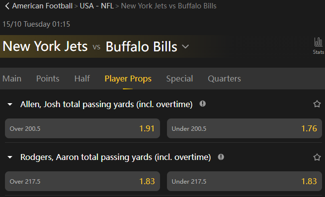 The American Football Player props allows User to Stake on the likelihood that a football player will perform above or below expectations in a specific statistical category, or that they will achieve certain notable events during the game.