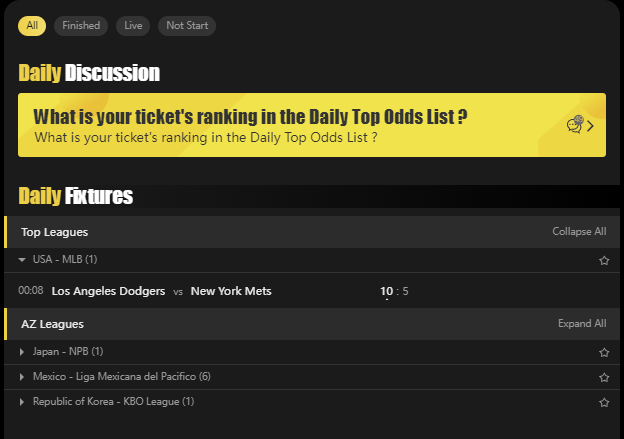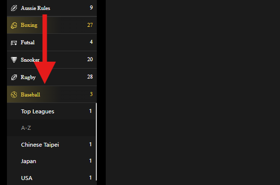STEP 3: From MY MATCHES, scroll down and click on Baseball at the left side of the screen as shown below.