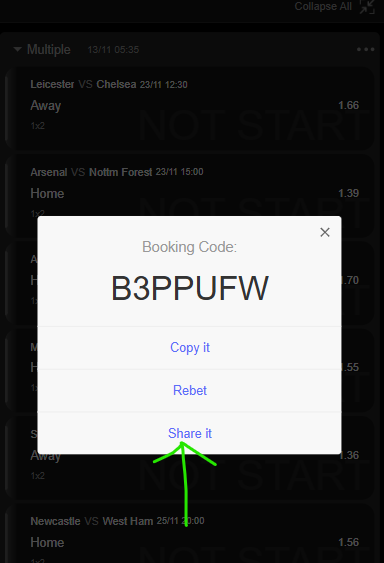 Click on the 3 horizontal dots of the bet you want