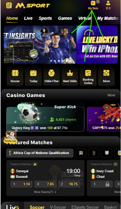- Login to your Msport account