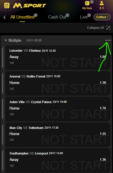 - Select My Bets at the top