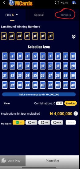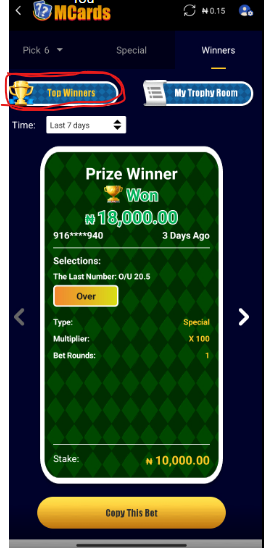 STEP 5: Select TOP WINNERS to view top winners under the game for last 7 days or more.