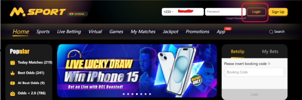 STEP 1: Log into your MSport Account