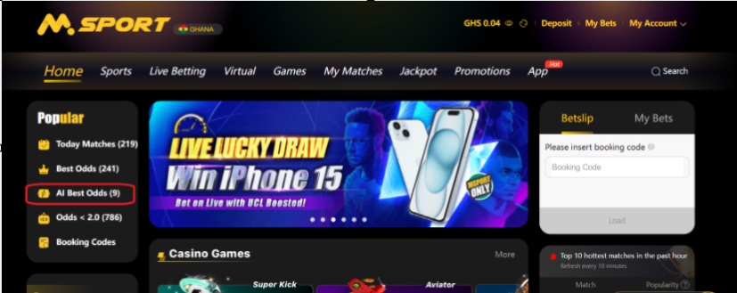 The BEST ODDS option for Simulated Reality League (SRL) on MSport platform gives users the chance to place bet on some selected virtual games which have higher odds as compared to other games. A user can view the AI odds section showing all the games (matches) with that option. Below are the steps to do that.