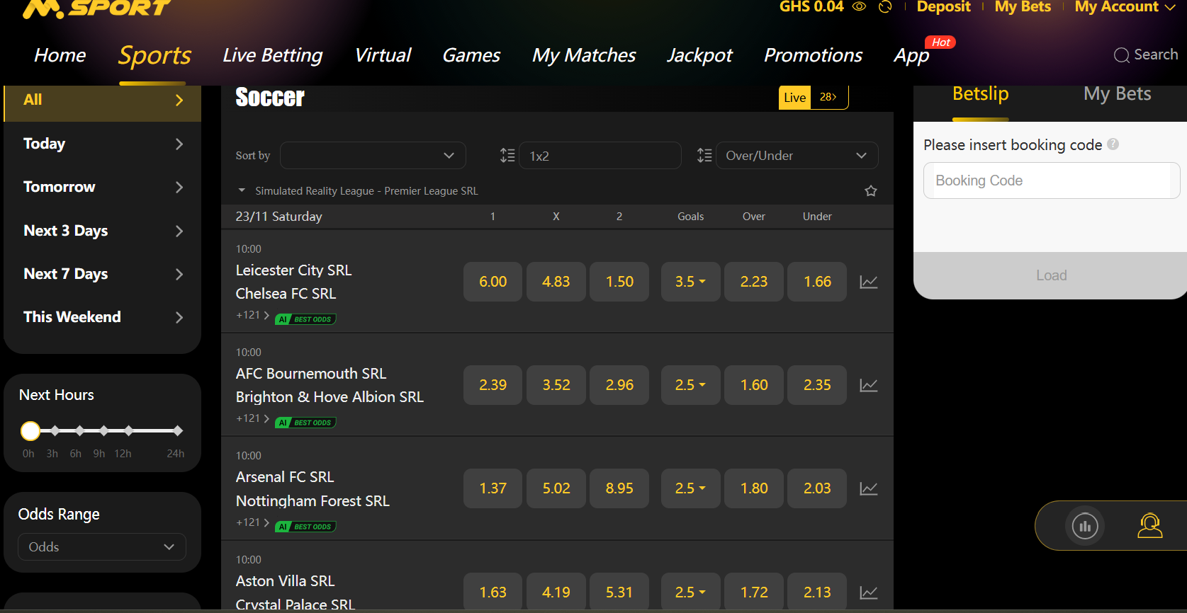 STEP 3: All the matches with the BEST ODDS for simulated games will display with tags on them