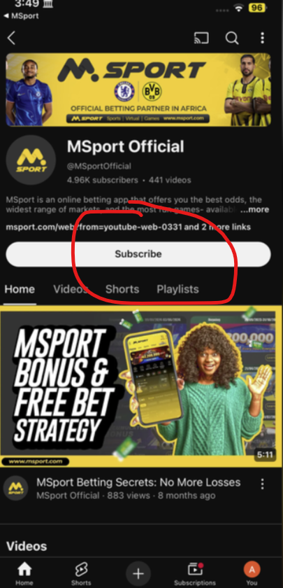 HOW TO SUBSCRIBE TO MSPORT YOUTUBE PAGE USING THE APP VERSION