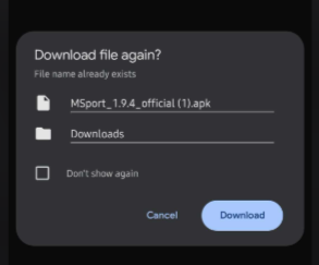 The file name is MSport_1.9.4_official.apk. Click on the "download" button to download the APK file. Ensure that you have enabled Chrome access to install applications on your device.