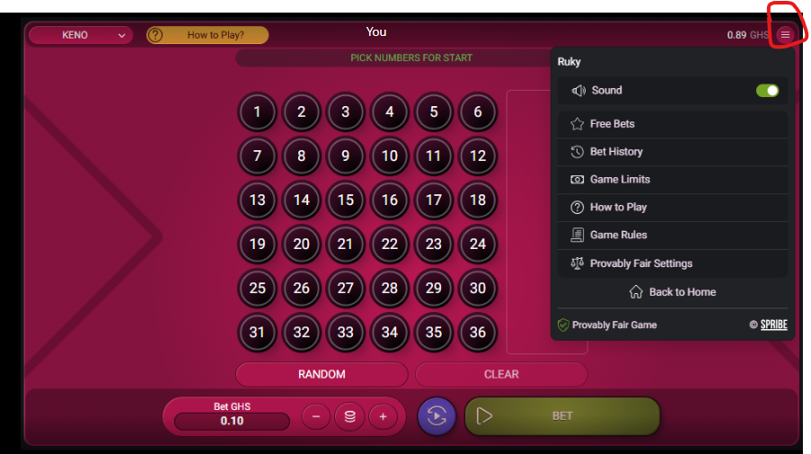 4. Access Game Settings: After the Keno game loads, look for a settings icon, which usually looks like a gear or three vertical lines, typically found in the top right corner of the screen.
