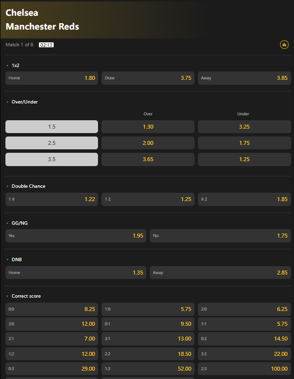- Correct Score: Bet on the exact scoreline of the match.