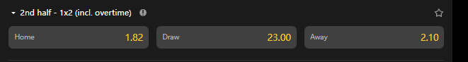 - This market might be labeled as "2nd Half - 1x2" or "2nd Half (including overtime)".