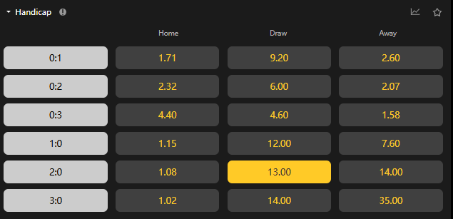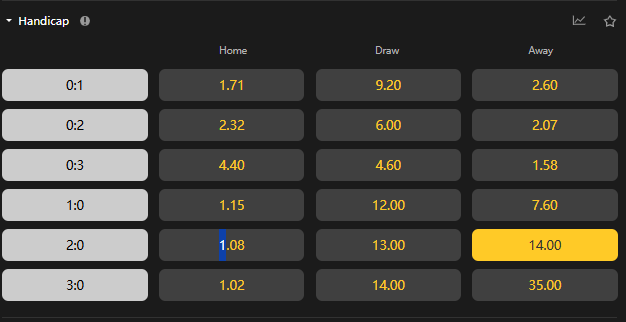 - Away bet wins if Away team wins with at least 2 goals difference.