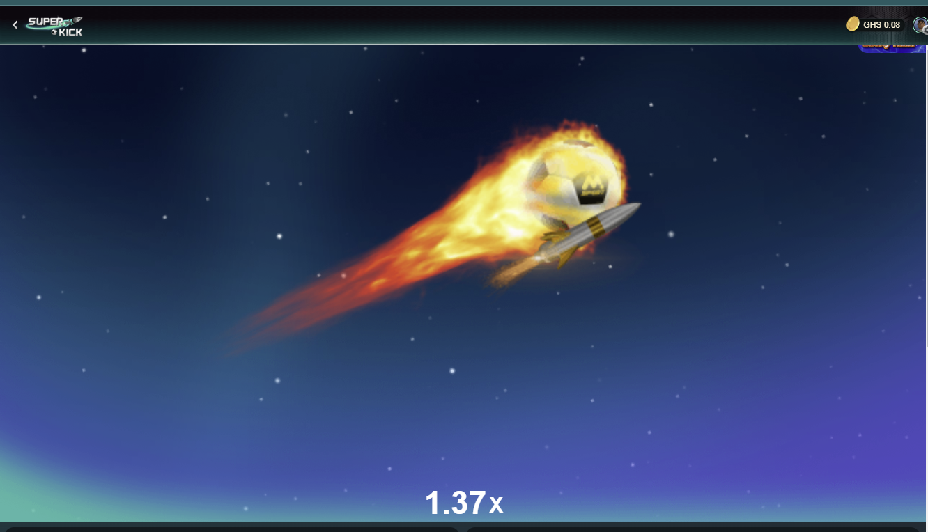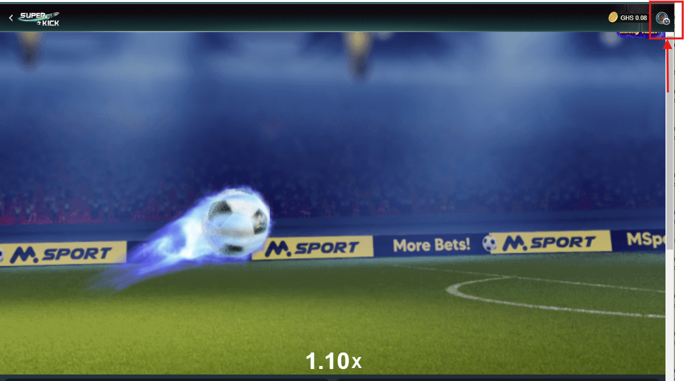 6. On the next page, you will see the Super kick game page showing your balance and a displayed card