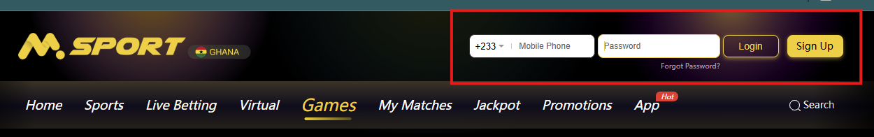 Kindly search for Msport Ghana to access our website platform.