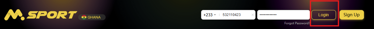 3. Please click on Login to access your MSport account using your registered Msport mobile number and password.