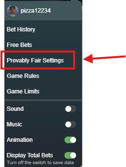 8. Select Provably Fair Settings