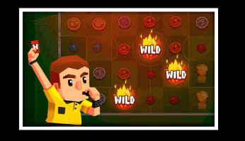 At any point in time, referee can appear on the screen, he may pull the flaming card and transform up to 12 random symbols on the screen screen into wild symbols.