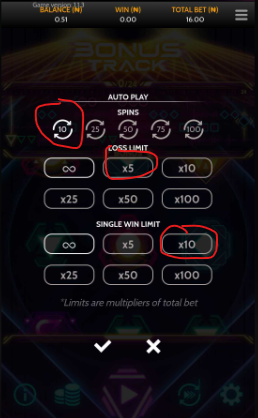 Single win limit : auto play stops after exceeding the limit