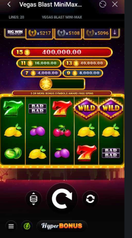 Vegas Blast Mini-Max is an exciting 5-reel, 3-row video slot game with 20 fixed paylines, ensuring all lines are always active for maximum winning potential. The game offers thrilling features like K-Cash Spins, which deliver instant cash rewards, and a Free Spins Bonus that boosts chances for big payouts. Additionally, players can aim for lucrative Cashpots, adding an extra layer of excitement to every spin. With vibrant graphics and engaging gameplay, this slot appeals to both casual players and seasoned gamblers. Its dynamic mechanics make every session a high-energy Vegas-style adventure.