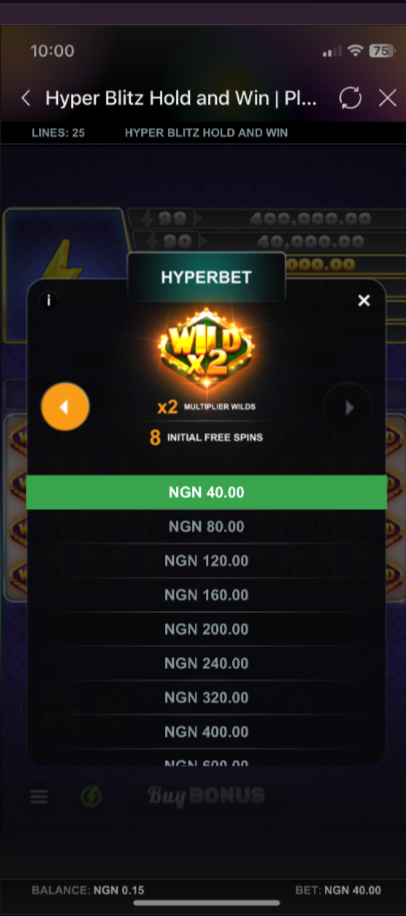 Minimum bet = 40.NGN