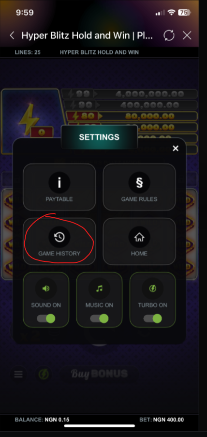 2. Click on the bet history as shown below
