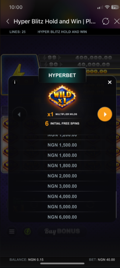 By selecting HyperBet Wild Card x1, you get x1 multiple of your initial stake and 6