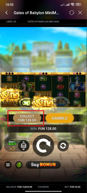 3. Check for any win in the WIN field and click on collect to claim your winning.