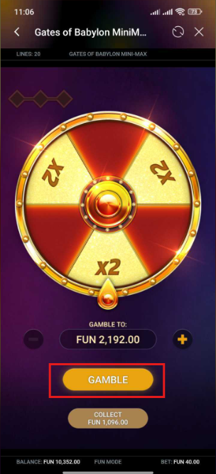 There is a decrease and increase button control which you can use to either gamble with all your winning or reduce it.