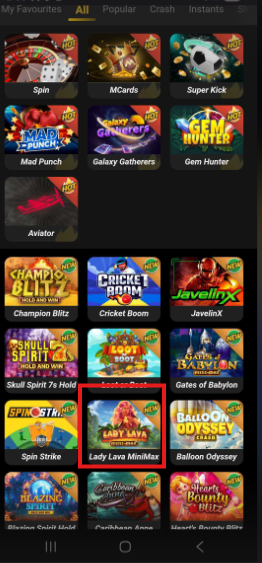 Step 3. Scroll through the casino games to find LADY LAVA MINIMAX you want to bet on.