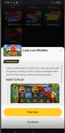 To start playing LADYLAVA MINIMAX kindly go through the steps below