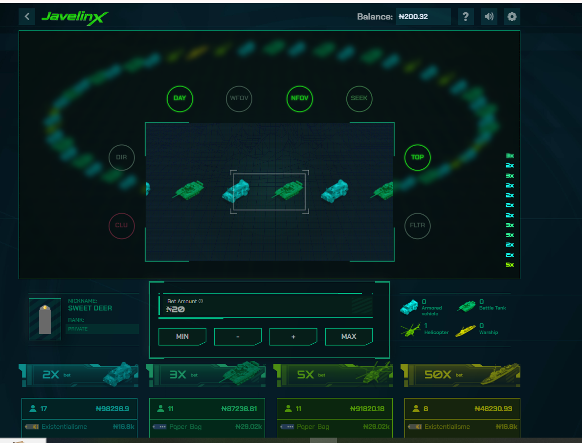Javelin X is a military-themed roulette game where players bet on which vehicles will be destroyed. With 53 targets to choose from and rounds every 15 seconds, higher-value targets offer bigger rewards.
