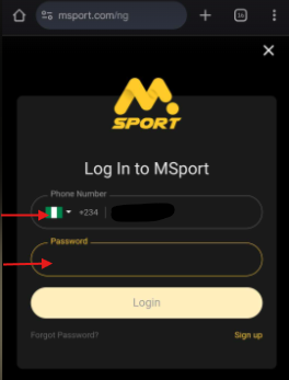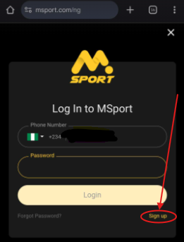 Go to the MSport website or open the MSport app.