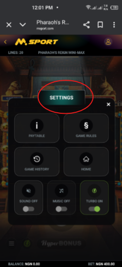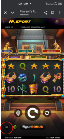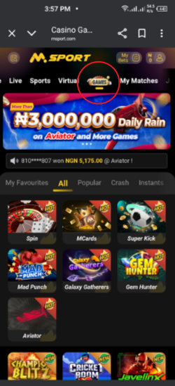 1. Kindly Log into your MSport App, Click on "ME ICON" and then GAMES , see screen shot below .