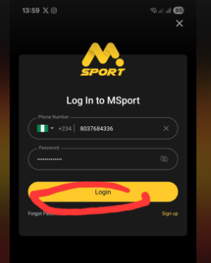 Log in to your MSport account.