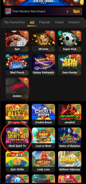 Skull Spirit 7s Hold and Win is fully available on MSport Nigeria. If restricted: