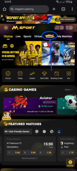 1. Log into your Msport account