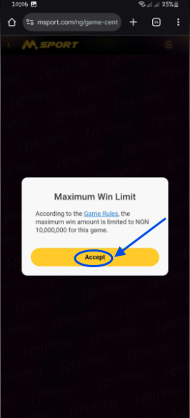 - Maximum winning is NGN 10,000,000; regardless of the circumstances, the winning amount displayed in the game may exceed NGN 10,000,000. However, Msport will award prizes based on a maximum payout of NGN 10,000,000.
