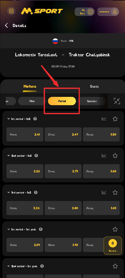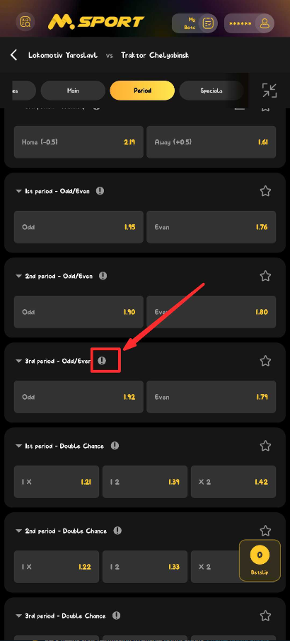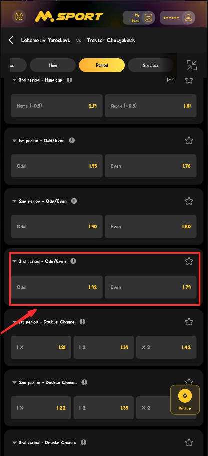Msport provides unique betting markets that allows you to focus on specific periods of a hockey game. One of such market is the "3rd Period Odd/Even".