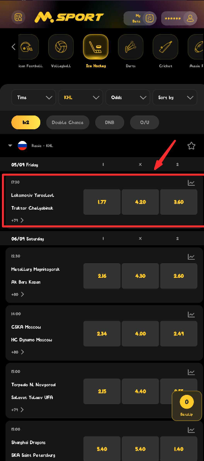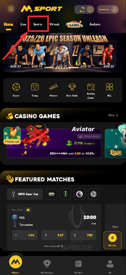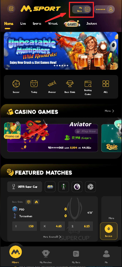 1. Log in to your Msport account via the app or website.