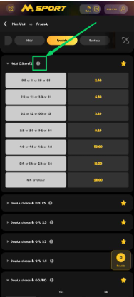 4. For more information on “Multi Correct Score (2)” click on the icon in front of the market.