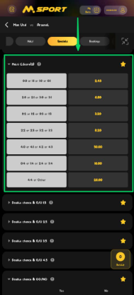 The Multi Correct Score (2) market is a unique market option that lets you bet on two or more specific final score outcomes in a football match under one combined selection.