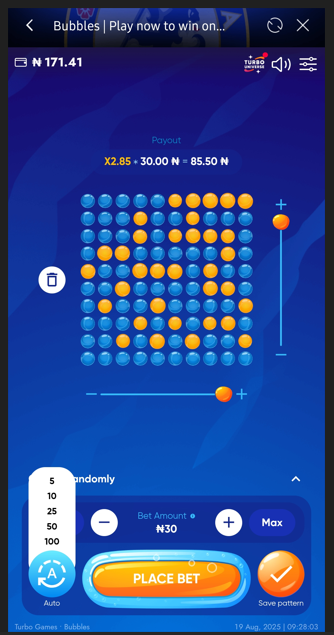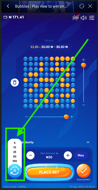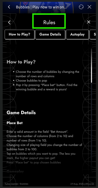 - Tap on bubbles which you want to pop. The less you mark, the higher payout you can get!