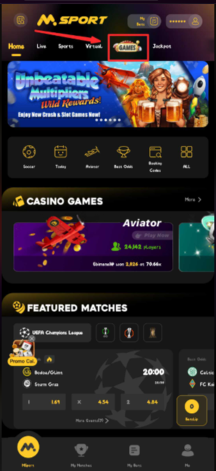 1. Login to Msport via the app or website