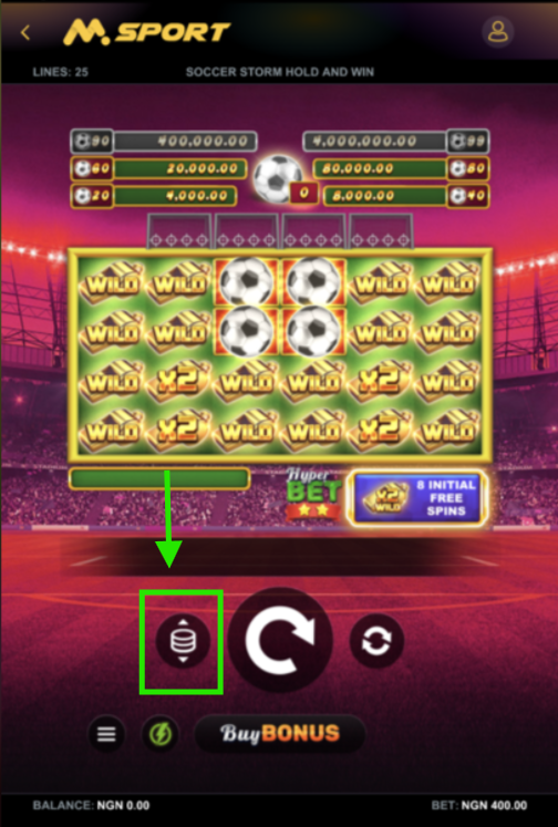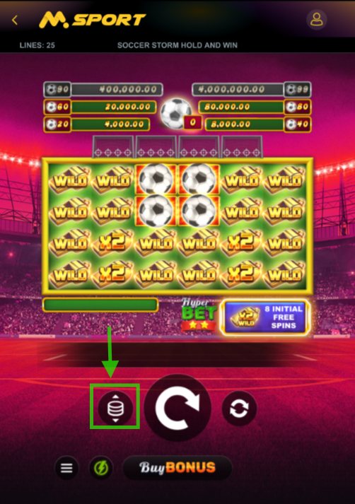 You can choose between two HyperBet levels: You can click on free spins icon next to the HyperBet to change levels