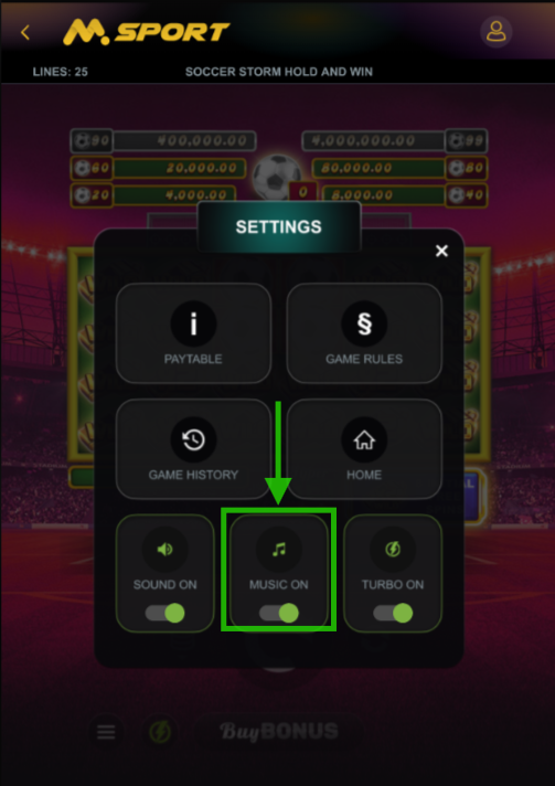 In SETTINGS, MUSIC selection allows you to choose if the game will play background music.