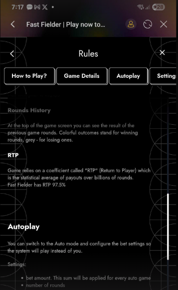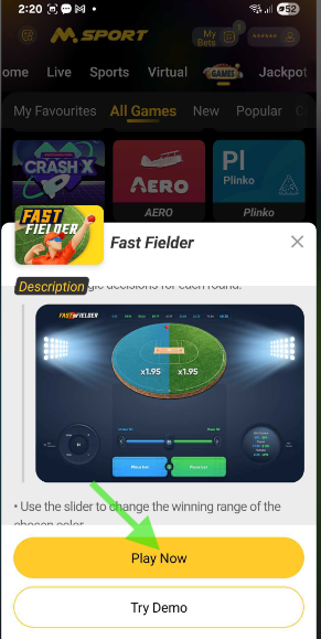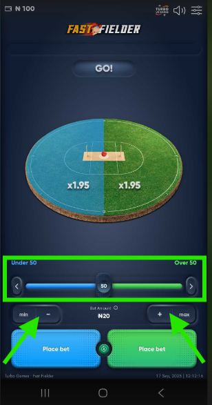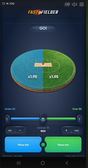 Fast Fielder is a cricket-themed betting game with rapid-fire action and adjustable odds. Players can customize their risk levels using a slider system, making strategic decisions for each round.