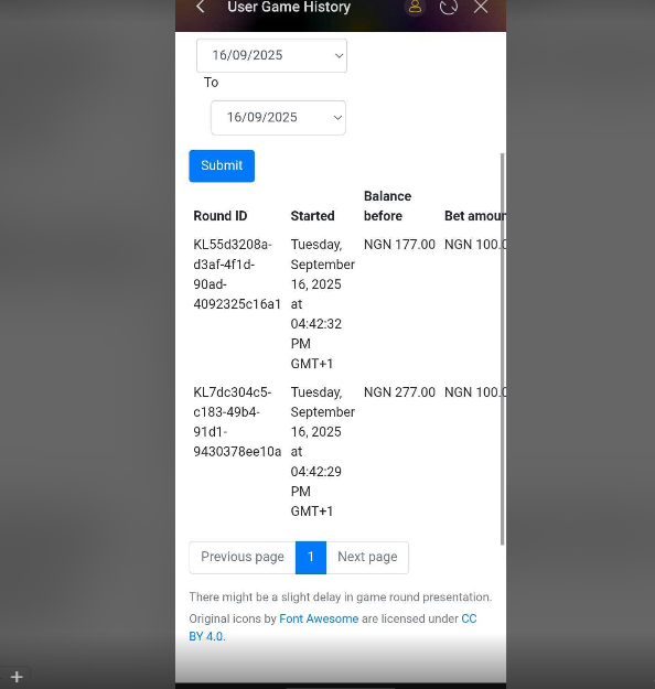 This shows all the games you have played , kindly click on it to check them , it will show as depicted below , click on the drop down to filter the date you want to search for